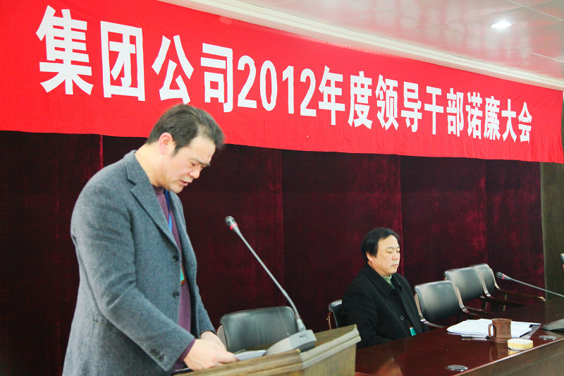 圖為集團(tuán)董事長倪阿泉向干部職工作廉政承諾