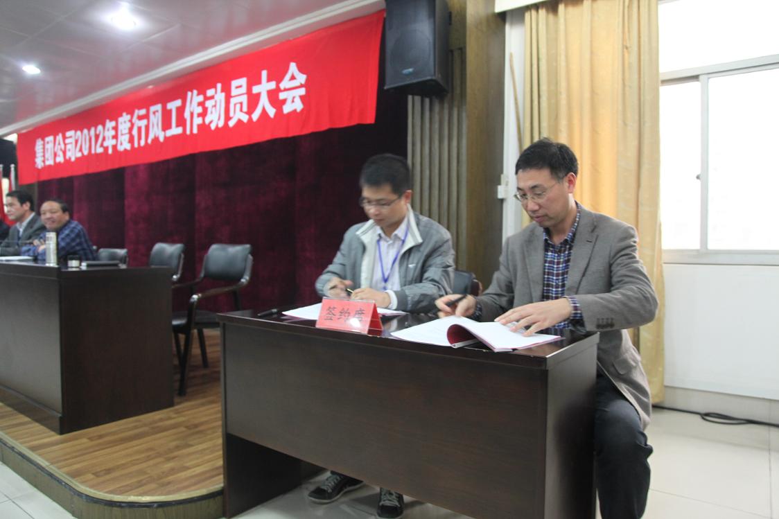 會上,集團公司黨委副書記、紀委書記高小林作行風工作動員,他全面總結(jié)了去年行風工作所取得的成績和存在的不足,客觀分析了所面臨的考驗和壓力。同時,提出了今年行風建設總體目標和工作要求。隨后,集團副總經(jīng)理馮梁峰與下屬各單位、各部室簽訂了《2012年度行風建設目標管理責任書》。