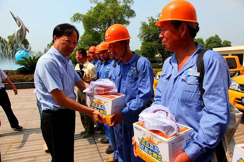 圖為何書記現(xiàn)場慰問高溫下作業(yè)的供水一線職工