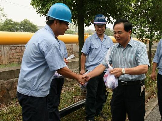 圖為集團單總經(jīng)理慰問紹興水處理公司機修員工