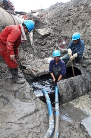 該污水管道是全縣三大排污管線之一,承接了錢清、楊汛橋、夏履、湖塘、柯巖的工業(yè)污水和生活污水排放。經(jīng)過前期充分準(zhǔn)備,整項(xiàng)遷建工程從5月25日開始,至6月18日進(jìn)行兜口,通過搶修人員的持續(xù)作戰(zhàn),兜口工作提前完成,遷建工程比計(jì)劃提前15個小時完工。