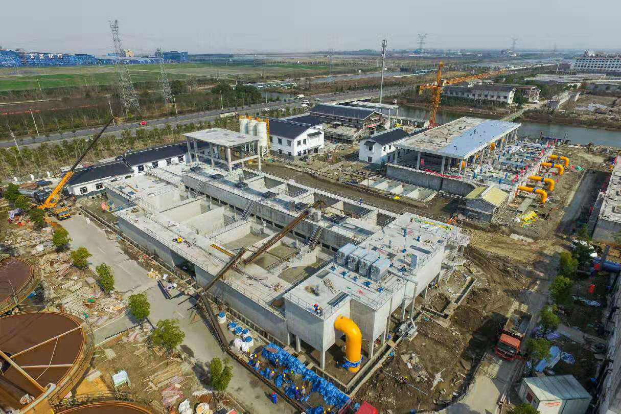 2019年濱海印染產(chǎn)業(yè)集聚區(qū)已落戶(hù)61家印染企業(yè),為進(jìn)一步增強(qiáng)污水處理系統(tǒng)達(dá)標(biāo)運(yùn)行的可靠性和出水排放的穩(wěn)定性。2018年9月,污水強(qiáng)化脫氮工程正式動(dòng)工建設(shè)。該工程概算總投資1.85億元,設(shè)計(jì)處理規(guī)模20萬(wàn)噸/日,建設(shè)用地約25畝。主要新建反硝化生物濾池、活性炭投加池、綜合加藥間、高效混凝劑投加系統(tǒng)、出水泵房等項(xiàng)目。其中,濾池采用特殊規(guī)格及形狀的陶料濾料作為反硝化生物的掛膜介質(zhì),能極好去除總氮,確保污水處理后的總氮達(dá)標(biāo)率保持100%。由于該工程任務(wù)重、工期緊,公司針對(duì)關(guān)鍵節(jié)點(diǎn),細(xì)化施工計(jì)劃,加強(qiáng)協(xié)調(diào)管理。通過(guò)平行施工、交叉施工等多種方式,于2018年12月底完成土建主體結(jié)構(gòu)施工,2019年 1月中旬完成核心工藝濾池底板工程,確保污水強(qiáng)化脫氮工程與現(xiàn)有系統(tǒng)全方面對(duì)接。